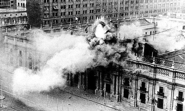 Με τις ευλογίες των Αμερικανών, καθώς οι σοσιαλιστικές μεταρρυθμίσεις του Αλιέντε είχαν βλάψει ουκ ολίγα συμφέροντα πολυεθνικών (κυρίως η εθνικοποίηση των πλούσιων μεταλλείων της Χιλής), ο Πινοσέτ κάνει την κίνησή του στις 11 Σεπτεμβρίου 1973, σε λιγότερο από έναν μήνα δηλαδή μετά την προαγωγή του στο ύπατο αξίωμα του στρατιωτικού επιτελείου της Χιλής.